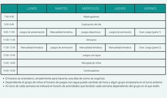 Además será una semana con mucho tiempo en el exterior para poder divertirnos y jugar al aire libre.